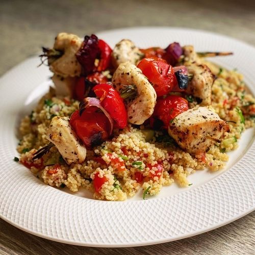 Fancy something for dinner that's healthy and cheap? Then you must try this deliciously simple chicken kebab with herby couscous recipe. Try to marinade the chicken for as long as you can because the lemon juice in the marinade will help to tenderise the chicken making it extra juicy when it comes to tucking in!
