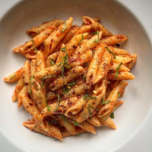 After the sauce has been cooking for 10 mins I like to use a stick blender and blitz it for a smoother sauce, but its not necessary, also have a taste and tweak the seasonings if needed, maybe add extra chilli flakes if you are brave.