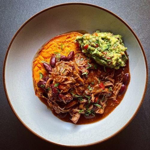 Serve on a jacket potato or steamed long grain rice.... and don't forget the zingy guacamole.