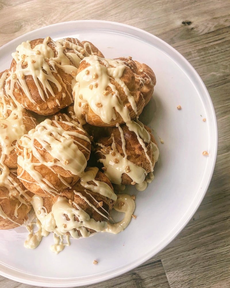 If choux pastry scares you then look no further, this really is an easy recipe, and what a pastry to use your imagination with, once you've made the pastry, you can pipe, fill and cover in any combination of flavours that you love, I've kept this simple with whipped cream and white chocolate but the list could be endless.